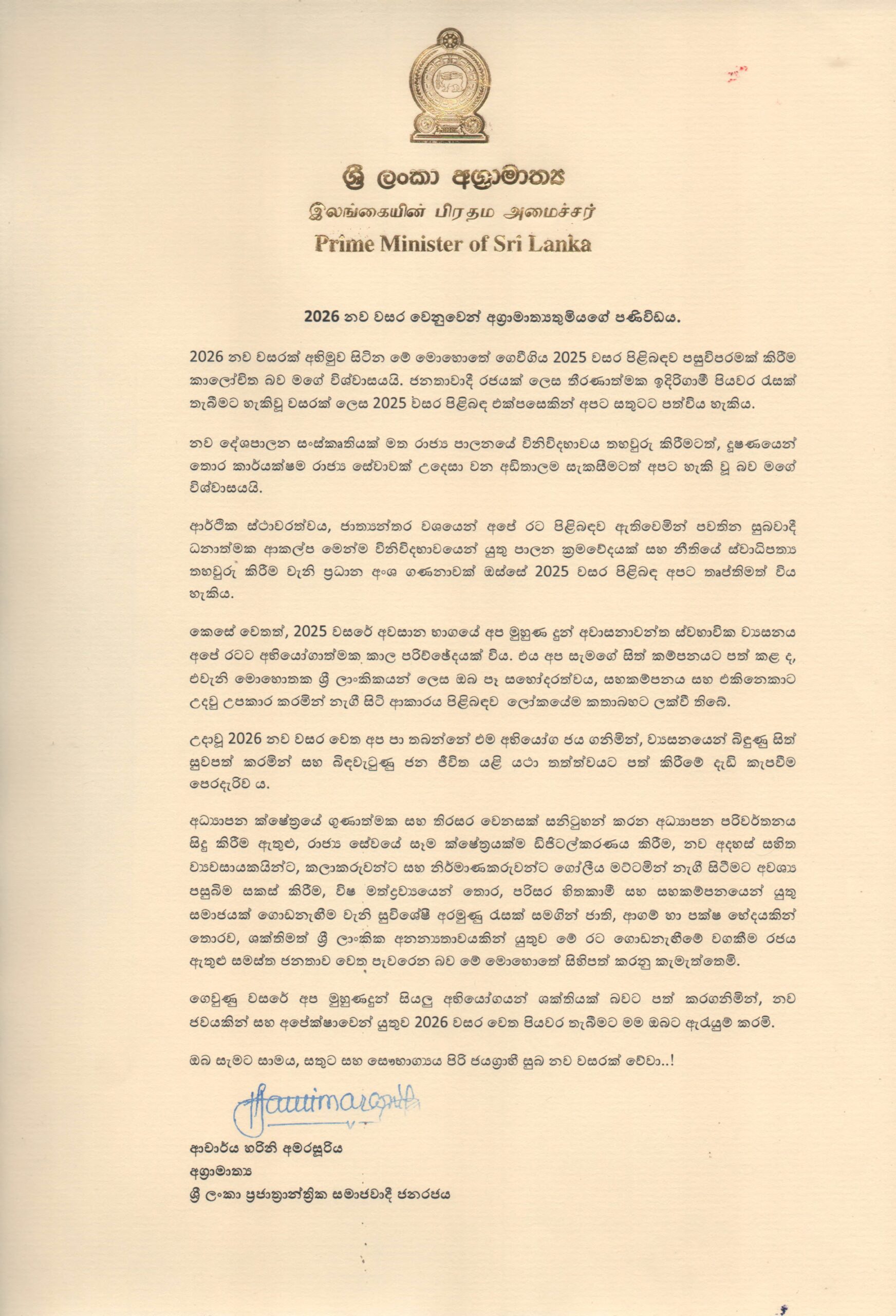 New Year Message from the Honorable Prime Minister By Satya Rodrigo|2025-12-31T20:36:55+00:00December 31, 2025|Media Release, Recent News, Uncategorized|0 Comments Share This Story, Choose Your Platform! FacebookXRedditLinkedInWhatsAppPinterestEmail Related Posts Embassy of Sri Lanka launches POS payment facility on 2 January 2026 Embassy of Sri Lanka launches POS payment facility on 2 January 2026 New Year Message from H.E. the President New Year Message from H.E. the President 2026 New Year Message of Minister of Foreign Affairs, Foreign Employment & Tourism 2026 New Year Message of Minister of Foreign Affairs, Foreign Employment & Tourism Embassy of Sri Lanka launches POS payment from 2 January 2026 Embassy of Sri Lanka launches POS payment from 2 January 2026 Leave A Comment Cancel replyComment Save my name, email, and website in this browser for the next time I comment.